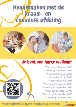 Data en inschrijving voor de online voorlichting van het Moeder&Kind Centrum (MKC) zijn te vinden op de website van het ziekenhuis. (www.stjansdal.nl/voorlichting).